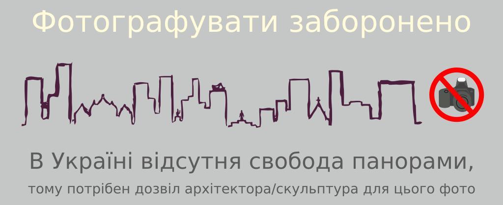 | Keywords: No Freedom of Panorama in Ukraine.svg відсутня свобода пано ами тому пот ібен дозвіл а хітекто а/скульпту а для цього фото freedom of Panorama in Ukraine 2015-09-27 own camera taken and modified from here Helixitta other versions <gallery> File No Freedom of Panorama in Ukraine square svg squared </gallery> cc-zero Uploaded with UploadWizard Freedom of panorama Image placeholders in Ukrainian | ||||