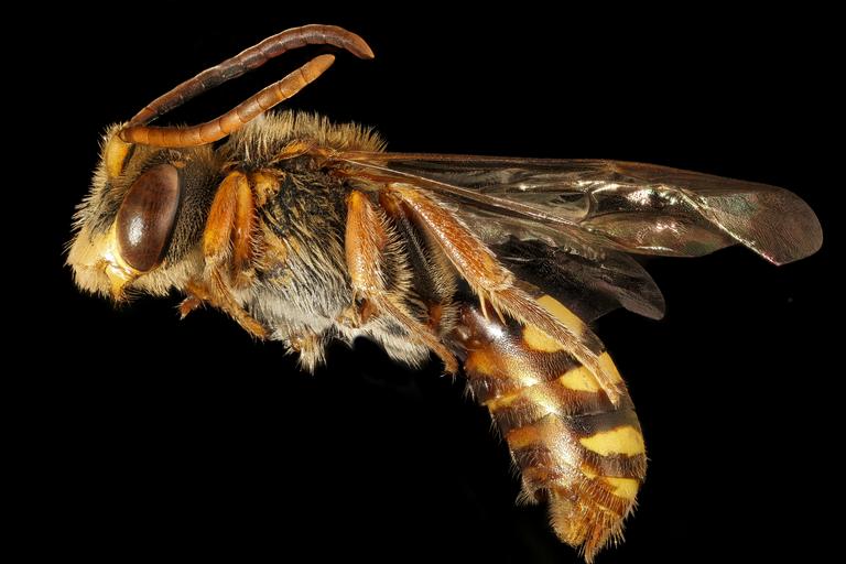 Keywords: zerene stacker zerenestacker stackshot geological survey geologicalsurvey united states geological survey unitedstatesgeologicalsurvey department of the interior departmentoftheinterior droege biml bee inventory and monitoring laboratory beeinventoryandmonitoringlaboratory canon close-up closeup macro insect bug patuxent wildlife research center patuxentwildliferesearchcenter pwrc usgs dofstacking stacking canon mpe65 canonmpe65 taxonomy:binomial=nomada maculata taxonomy:binomial=nomadamaculata bee bees apoidea hymenoptera amanda robinson amandarobinson charles county charlescounty maryland parasite nest parasite nestparasite cleptoparasite black background animal The only bidentate Nomada I feel comfortablish identifying. All the rest blend together morphologically and maybe molecularly. This is one of the largest and most common of the bidentates and has a unique set of tibial spurs (which is not saying much) and some general coloration patterns that are helpful. Collected in Charles County, Maryland USA. Picture by Amanda Robinson. ~~~~~~~~~~{{{{{{0}}}}}}~~~~~~~~~~ All photographs are public domain, feel free to download and use as you wish. Photography Information: Canon Mark II 5D, Zerene Stacker, Stackshot Sled, 65mm Canon MP-E 1-5X macro lens, Twin Macro Flash in Styrofoam Cooler, F5.0, ISO 100, Shutter Speed 200 Beauty is truth, truth beauty - that is all Ye know on earth and all ye need to know " Ode on a Grecian Urn" John Keats You can also follow us on Instagram - account = USGSBIML Want some Useful Links to the Techniques We Use? Well now here you go Citizen: Art Photo Book: Bees: An Up-Close Look at Pollinators Around the World www.qbookshop.com/products/216627/9780760347386/Bees.html... Basic USGSBIML set up: www.youtube.com/watch?v=S-_yvIsucOY USGSBIML Photoshopping Technique: Note that we now have added using the burn tool at 50% opacity set to shadows to clean up the halos that bleed into the black background from "hot" color sections of the picture. www.youtube.com/watch?v=Bdmx_8zqvN4 PDF of Basic USGSBIML Photography Set Up: ftp://ftpext.usgs.gov/pub/er/md/laurel/Droege/How%20to%20Take%20MacroPhotographs%20of%20Insects%20BIML%20Lab2.pdf Google Hangout Demonstration of Techniques: plus.google.com/events/c5569losvskrv2nu606ltof8odo or www.youtube.com/watch?v=4c15neFttoU Excellent Technical Form on Stacking: www.photomacrography.net/ Contact information: Sam Droege sdroege@usgs.gov 301 497 5840 The only bidentate Nomada I feel comfortablish identifying. All the rest blend together morphologically and maybe molecularly. This is one of the largest and most common of the bidentates and has a unique set of tibial spurs (which is not saying much) and some general coloration patterns that are helpful. Collected in Charles County, Maryland USA. Picture by Amanda Robinson. ~~~~~~~~~~{{{{{{0}}}}}}~~~~~~~~~~ All photographs are public domain, feel free to download and use as you wish. Photography Information: Canon Mark II 5D, Zerene Stacker, Stackshot Sled, 65mm Canon MP-E 1-5X macro lens, Twin Macro Flash in Styrofoam Cooler, F5.0, ISO 100, Shutter Speed 200 Beauty is truth, truth beauty - that is all Ye know on earth and all ye need to know " Ode on a Grecian Urn" John Keats You can also follow us on Instagram - account = USGSBIML Want some Useful Links to the Techniques We Use? Well now here you go Citizen: Art Photo Book: Bees: An Up-Close Look at Pollinators Around the World www.qbookshop.com/products/216627/9780760347386/Bees.html... Basic USGSBIML set up: www.youtube.com/watch?v=S-_yvIsucOY USGSBIML Photoshopping Technique: Note that we now have added using the burn tool at 50% opacity set to shadows to clean up the halos that bleed into the black background from "hot" color sections of the picture. www.youtube.com/watch?v=Bdmx_8zqvN4 PDF of Basic USGSBIML Photography Set Up: ftp://ftpext.usgs.gov/pub/er/md/laurel/Droege/How%20to%20Take%20MacroPhotographs%20of%20Insects%20BIML%20Lab2.pdf Google Hangout Demonstration of Techniques: plus.google.com/events/c5569losvskrv2nu606ltof8odo or www.youtube.com/watch?v=4c15neFttoU Excellent Technical Form on Stacking: www.photomacrography.net/ Contact information: Sam Droege sdroege@usgs.gov 301 497 5840