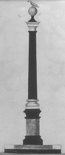 Keywords: Nonsuch Palace - Red Velvet Book - Falcon Perch.jpg en One of the pair of Fawlcon Perches Nonsuch set to either side of the Diana Fountain Pen with grey and black wash and veined red-brown marbling 1590 artist unknown; from The Red Velvet Book f 34v the other column is on f 34r 2012-03-07 Martin Biddle The Gardens of Nonsuch Sources and Dating in Garden History Vol 27 No 1 Tudor Gardens Summer 1999 pp 145-183 author Custom license marker 2012 03 06 PD-old Nonsuch Palace Uploaded with UploadWizard |