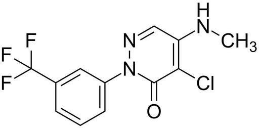 | Keywords: Norflurazon 200.svg validSVG Structure of 4-chloro-5- methylamino -2- 3- trifluoromethyl phenyl pyridazin-3 2H -one Own 2014-05-07 Emeldir <span class signature-talk >talk</span> Chemical structure verified https //upload wikimedia org/wikipedia/commons/a/a3/Norflurazon_200 svg 1S/C12H9ClF3N3O/c1-17-9-6-18-19 11 20 10 9 13 8-4-2-3-7 5-8 12 14 15 16/h2-6 17H 1H3 NVGOPFQZYCNLDU-UHFFFAOYSA-N 27314-13-2 Synonyms <small>4-Chloro-5- methylamino -2- alpha alpha alpha-trifluoro-m-tolyl -3 2H -pyridazinone 4-chloro-5- methylamino -2-3- trifluoromethyl phenyl-3 2H -Pyridazinone Evital Evital R monometflurazon Norflurazon Norflurazon R Pyridazinone 4-chloro-5- methylamino -2- 3- trifluoromethyl phenyl - Pyridazinone 4-chloro-5- methylamino -2- alpha alpha alpha-trifluoro-m-tolyl - Solicam Solicam 80W Solicam DF Solicam R Telok Zorial Zorial Rapid 80 Zorial R </small> PD-chem Pyridazones Trifluoromethylbenzenes Secondary amines Herbicides |