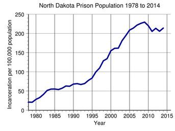 Keywords: North Dakota Prison Population.svg en North Dakota prison incarceration rate per 100 000 population from 1978 to 2014 Data from http //www bjs gov/index cfm ty nps BJS 2016-05-10 own Delphi234 other versions current annually Generated with Wikimedia SVG Chart SVG Chart/box cc-zero Demographics of North Dakota Imprisonment and detention rates in the United States |