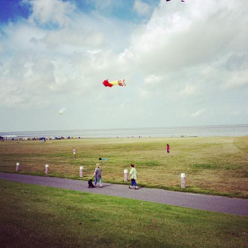 Keywords: north sea coast beach clouds water sky norddeich north picturesque nature steering dragon kite flying dragons wind