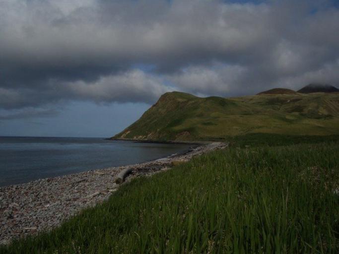 Keywords: Northbight.jpeg This is a picture of North Bight Beach on the north coast of Buldir You can see main talus in the background which is home to many seabirds own 2007-06 Seferovi Bays of Alaska Buldir Island Coasts of Alaska