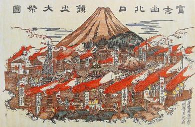 | Keywords: Northern base of Mt. Fuji Yoshida Fire Festival Around 1875.JPG en Northern base of Mt Fuji Yoshida Fire Festival Around 1875 ja 富士山北口鎮火大祭図 明治8年頃(1875年頃) Japanese book Intangible folk cultural Research Report Yoshida Fire Festival Fujiyoshida City Board of Education 富士吉田市教育委員会 国指定記録選択無形民俗文化財調査報告書 吉田の火祭より This file was scanned and edited by the uploader Sakaori ファイルはさかおりによりスキャンおよび編集されました circa 1875 1875年頃 Yoshida Fire Festival PD-Japan | ||||
