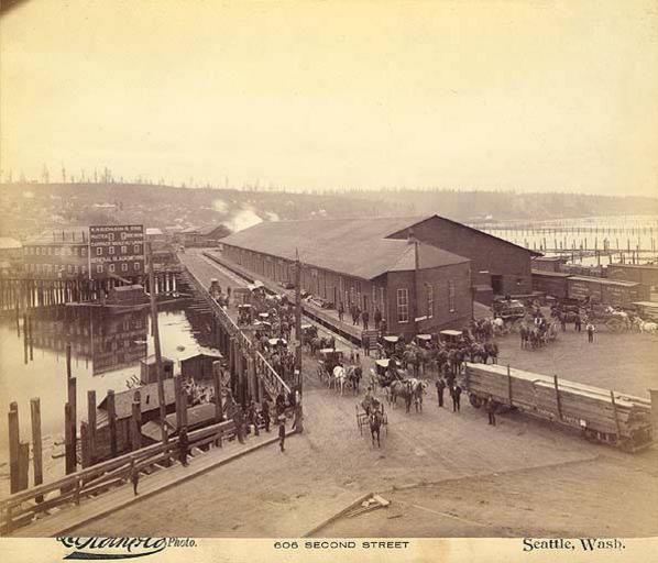 | Keywords: Northern Pacific freight warehouse at S 3rd Ave and Lane St, Seattle, Washington, ca 1891 (LAROCHE 125).jpeg Photograph Creator Frank La Roche W W Buchanan and Sons carriage wagon and harness manufacturers in background Subjects LCTGM Warehouses--Washington State --Seattle; Buildings--Washington State --Seattle; Piers wharves--Washington State --Seattle; Carts wagons--Washington State --Seattle; Railroad cars--Washington State --Seattle Subjects LCSH W W Buchanan and Sons Seattle Wash ; Northern Pacific Railroad Company; Lane Street Seattle Wash ; South Third Avenue Seattle Wash ; Horse-drawn vehicles--Washington State --Seattle This would have effectively been part of the Pioneer Square neighborhood at the time; it is now right about the north side of CenturyLink Stadium depicted place Seattle Washington ca 1891 Institution University of Washington UWASH-LAROCHE-source accession number laroche 125 PD-old-auto-1923 1936 Information field Order Number LAR300 Northern Pacific Railway Warehouses in Seattle Piers in Washington state Wharves in Washington state Former buildings of Seattle Road-rail vehicles Horse-drawn vehicles in the United States Pioneer Square Seattle Washington Seattle Washington in the 1890s Black and white photographs |