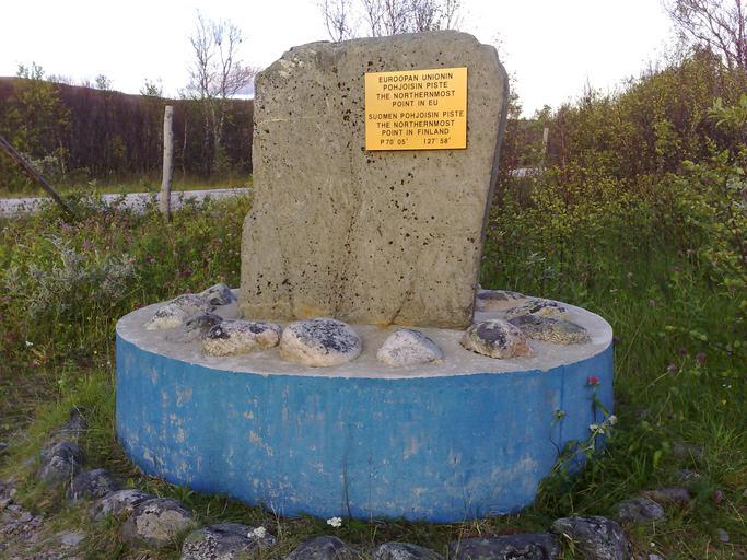 | Keywords: Northernmost point in European Union.jpg Utsjoki Finland Note that the precise northernmost point is located around 100 metres from this monument fi Kuva Nuorgamista Euroopan unionin pohjoisimmalta pisteeltä Norjan rajan läheisyydessä Utsjoki Finlande own <br />Transferred from http //fi wikipedia org fi wikipedia<br />Original uploader was Peltsi84 at http //fi wikipedia org fi wikipedia 2008-08-15 J Pelkonen 70 088588 27 960548 region FI-10 fi Finnish Wikipedia Peltsi84 Original upload log page fi wikipedia 150820081292 jpg 2008-08-25 13 27 Peltsi84 2592×1944× 1259288 bytes <nowiki> Lähde Itse otettu Päiväys 15 08 2008 Tekijä J Pelkonen Tekijänoikeuksien haltija </nowiki> Nuorgam Finland-Norway border Taken with Nokia N95 Signs in Finland Politics of the European Union August 2008 in Finland August 2008 in Norway Photographs taken on 2008-08-15 2008 at international borders |
