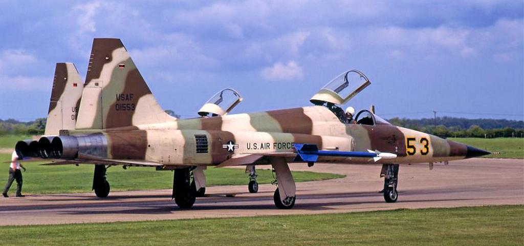 | Keywords: Northup F-5E 74-1553.jpg en Northrup F-5E Tiger II 74-1553 Delivered to Alconbury on 14 June 1976 It carried the ˜Snake ™ colour scheme This was later replaced by the ˜green ™ version of the ˜Sand ™ colour scheme When the F-5Es were withdrawn 74- 1553 was placed in storage at RAF Kemble in May 1988 After a period of storage the aircraft was sold to Morocco as 01553 It was delivered to the country on 26 July 1990 via Zaragoza AB Spain USAF Photo by Patrick Roegies 1980 Source United States Air Force Photo Alconbury Agressors Jan van Waarde United States Air Force other versions PD-USGov Northrop F-5 Tiger II F-5 Tiger II at RAF Alconbury 527th Tactical Fighter Training Agressor Squadron United States Air Force Units at RAF Alconbury |