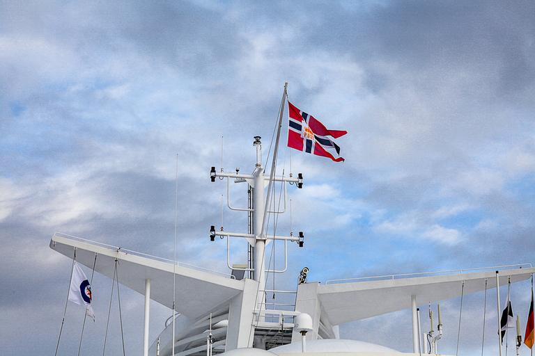 Keywords: norway flag ship ferry baltic sea kiel oslo windy sky wind wave country flag flutter