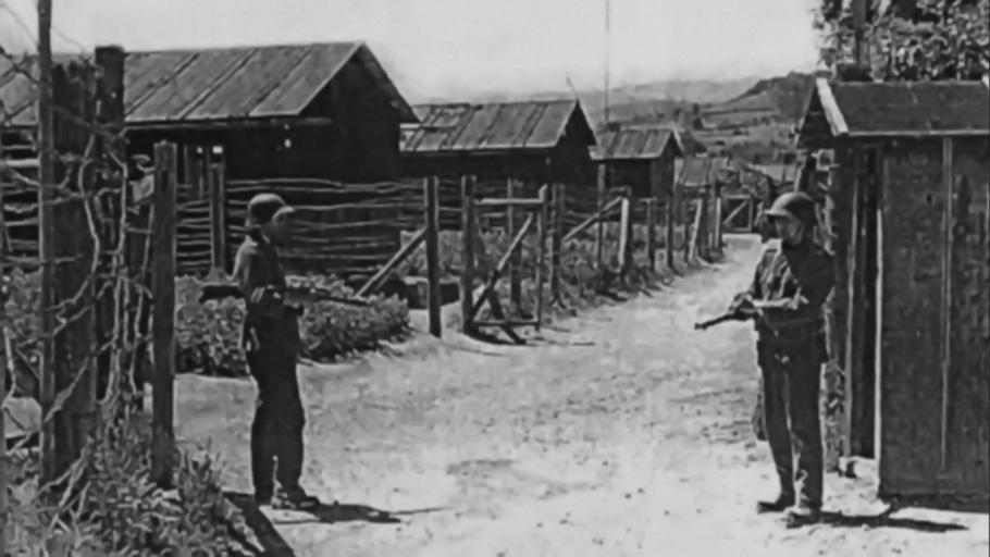 | Keywords: Notlandung 37-58 - Wauwilermoos Schweizer Wachpersonal mit Gewehren, Eingangsbereich mit Stacheldraht.jpg Wauwilermoos internment camp entrance area and Swiss Army guards probably in 1944 Egolzwil-Wauwil Canton of Luzern http //www srf ch/sendungen/dok/notlandung Notlandung 28 October 2015 SRF 1 s 1940 author PD-old Roland zh Wauwilermoos internment camp Historical black and white photographs of Switzerland Men at work in Switzerland Soldiers of Switzerland 1944 in Switzerland Entrances in Switzerland People and barbed wire |