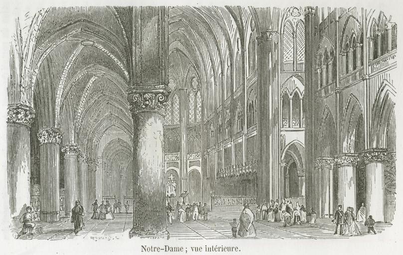 Keywords: Notre-Dame, vue intérieure, 1855.jpg A view of the interior of the Cathedral of Notre-Dame on the Ile de la Cité in Paris 1855 engraving 6 3 x 10 5 cm Institution Brown University Library object history exhibition history credit line Published in Guide dans les monuments de Paris Paris Paulin et Le Chevalier 1855 accession number 1150468944266683 PD-old Interior of Notre-Dame de Paris in art 1855 Guide dans les monuments de Paris Images of Paris from the Brown University Library Notre-Dame de Paris in the 1850s |