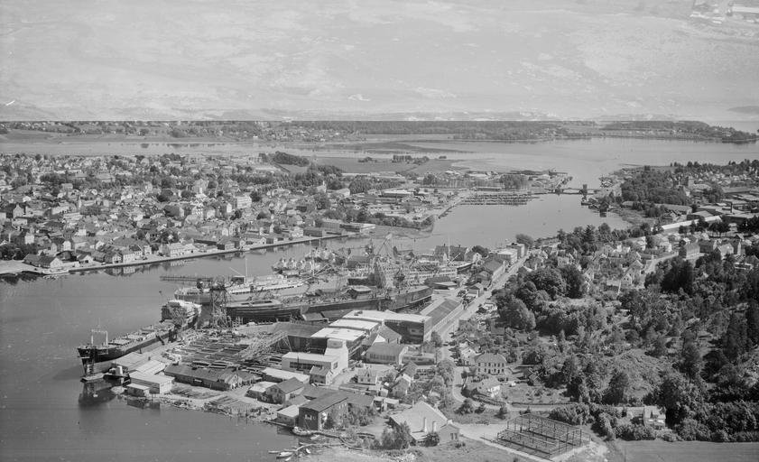 Keywords: flyfotografering widerøe tønsberg vestfold norway nøtterøy skipsverft industri fjellanger widerøe fjellangerwiderøe flyfoto skråfoto vestfoldmuseene sildefabrikk ramberg kaldnes blackandwhite monochrome outdoor shore landscape coast black and white FW.S.A1053 Tønsberg i bakgrunnen FW.S.A1053 Tønsberg i bakgrunnen