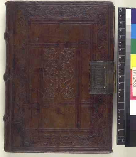 | Keywords: Nouum beate marie virginis Paslterium - Upper cover (IA14703).jpg Style Frame Panel design Single tools design Plant; Caption Upper cover; Colour Brown; Edge Unspecified exhibition history Decorative Technique Tooled in blind; Cover Material Goatskin includes morocco turkey etc Wooden boards 1 pair of engraved metal clasps Probably bound in Lubeck See tools in Deutsche Staatsbibliothek Die Schwenke-Sammlung gotischer Stempel- und Einbanddurchreibungen Berlin 1979-1996 Schunke-Schwenke Rautenplatte 7 Laubstab 328 Macchi states; Bound at the end of the 15th or the beginning of the 16th century in north Germany I Schunke Die Einbände der Palatina pl XI; Idem Die Schwenke-Sammlung p 244 Rautenplatten Lübeck n 3 Schwedischer Buchführer; 3a Graduale-Meister; p 245 n 5 Meister der Weideleute; p 246 n 6a Schwedischer Buchführer; n 7 Akelei; p 247 n 7a Pomm Buchführer; p 249 n 13 Pomm Buchführer ; Rostock M Foot The Henry Davis Gift II p 381 n 323; I Schunke Die Schwenke Sammlung p 245 Rostock n 5a Akadem Buchführer; p 249 n 13a Universitätsbuchbinder object history Text 1495 ; Zinna; Unspecified object type Cc-zero place of creation Binding Germany place of discovery Unspecified British Library image http //www bl uk/catalogues/bookbindings/LargeImage aspx RecordId 020-000004376 ImageId ImageId 41793 Copyright BL Nouum beate marie virginis Paslterium Uploaded with GWToolset Nouum beate marie virginis Paslterium - Upper cover IA14703 http //www webarchive org uk/bldatasets/bindings/6338_4 jpg Bookbinding 15th-century bookbinding British Library Bookbindings |
