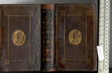 Keywords: Nouum Testamentum Graece - Upper and lower cover and spine (c67d15).jpg Style Medallion or plaquette Trade binding; Caption Upper and lower cover and spine; Colour Brown; Edge Red exhibition history Decorative Technique Tooled in blind Tooled in gold; Cover Material Calf Binding repaired particularly along spine Traces of 2 pairs of ties May be trade binding With head of Queen Elizabeth I of England object history Text 1583; Antwerp; Unspecified object type Cc-zero place of creation Binding England place of discovery Unspecified British Library image http //www bl uk/catalogues/bookbindings/LargeImage aspx RecordId 020-000009010 ImageId ImageId 44110 Copyright BL Nouum Testamentum Graece Uploaded with GWToolset Nouum Testamentum Graece - Upper and lower cover and spine c67d15 http //www webarchive org uk/bldatasets/bindings/9675_3 jpg Bookbinding 16th-century bookbinding British Library Bookbindings |