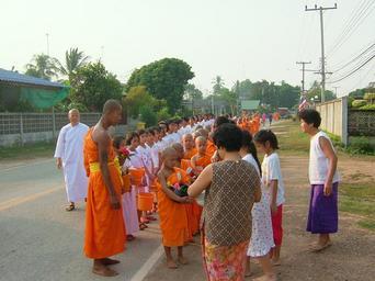| Keywords: Novice in the Buddhist religion group receives food from the Buddhist.JPG คณะสาม ณรกำลัง ดินบิณฑบาตในตอน ช้า novice in the Buddhist religion group receives food from the Buddhist Thailand Uttaradit 2006 Own work own 2006 Buddhist child monks of Thailand Buddhist monks of Wat Khung Taphao |