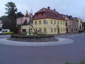Keywords: Nový Bor 35a.JPG cs Křižovatka ulic TGM a Husova v Novém Boru dům u ní čp 35 památkově chráněn own Zákupák 2013-06-06 Husova Nový Bor NB TGM 35 Roundabouts in Česká Lípa District