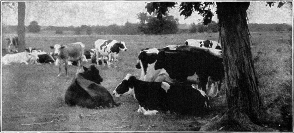 Keywords: NSRW Dairy Industry 1.jpg <small>Copyright Brown Bros </small> ON A DAIRY FARM Here is where a dairy begins Here we see the dairy cows Holsteins and Jerseys resting in the shade after they have eaten their fill of the pasturage Next >> Image LA2-NSRW-3-0229 jpg |