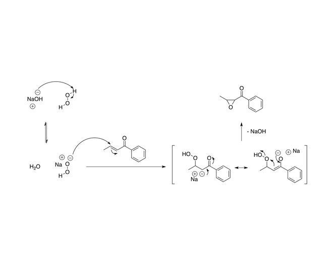 Keywords: Nucleophilic Epoxidation Mechanism2.tiff en A generic mechanism for nucleophilic epoxidation of electron-deficient olefins shown with a model chalcone substrate with hydrogen peroxide with sodium hydroxide own C rose kennedy 2010-12-04 File Julia-Colonna Epoxidation Mechanism2 tiff Reaction mechanisms Epoxidation reactions |