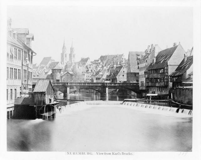 | Keywords: Nuernberg 1880.jpg ;Description Nürnberg Germany Blick vom Kettensteg auf die Maxbrücke Bildbeschreibung von der Karlsbrücke ist falsch ;Original image Albumen print ;Created between 1860 and 1890 ;Source Library of Congress http //www loc gov/rr/print/ Prints and Photographs Division reproduction number http //hdl loc gov/loc pnp/cph 3c08991 LC-USZ62-109032 PD-old PD-US Nuremberg in the 19th century Maxbrücke Nürnberg | ||||