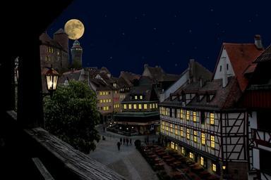 Keywords: nuremberg castle old town at night moon lights middle ages imperial castle romantic star atmosphere fachwerkhaus