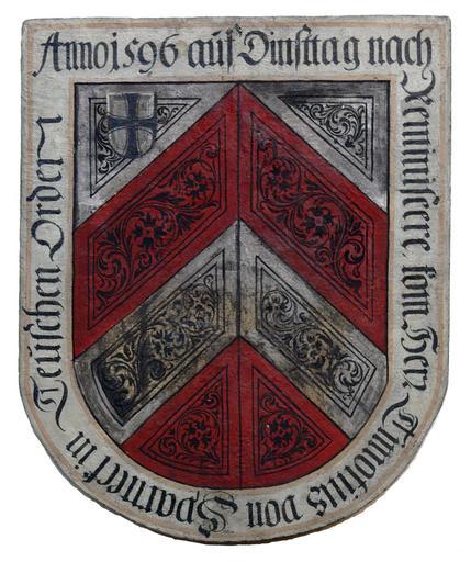 Keywords: Nürnberg St Jakob Wappenscheibe 09.jpg Nürnberg Kirche St Jakob<br /> Aufschwörschild des Deutschen Ordens von Timoteus von Sparneck 1596 näheres http //www dr-bernhard-peter de/Heraldik/Galerien2/galerie1477 htm hier own own photograph 2010-04 Photo Andreas Praefcke Own work all rights released Public domain Interior of St Jakob Nuremberg-St Lorenz Coats of arms of Sparneck family Derivatives of the Coat of arms of the Teutonic Order Photos by User AndreasPraefcke 1596 in art Diapering in heraldry Hatchments in Nuremberg |