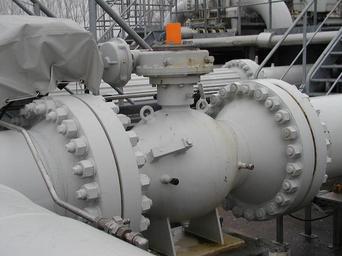 Keywords: NWO-Kugelhahn.JPG en Ball valve in a pipeline pump station closed as recognizable by the orange indicator plate de Kugelhahn in einer Pipeline-Pumpstation in geschlossener Stellung erkennbar an der Stellung des orangenen Anzeigers own Wilfra 2009-03-06 Photo taken at and with kind permission by de Nord-West-Oelleitung Pipeline transport Ball valves |