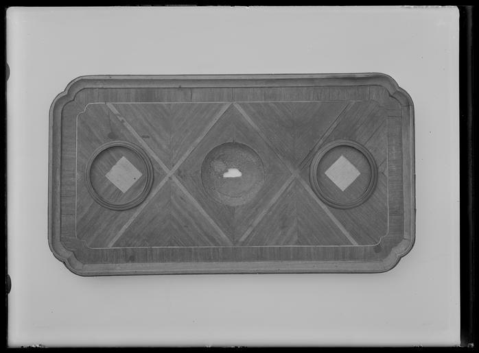 Keywords: Nystfotplatta - Livrustkammaren - 840.tif Stomme av ett platt rektangulärt stycke ek fanerat med mörkbrunt trä liknande valnöt Raka platta sidor hörnen rundade och i mitten lätt insvängda Upptill en profilerad kantlist av ljusare träslag Plattans ovansida har ram och inläggningar i ljust trä I mitten cirkulär försänkning med skålad botten diam 66 mm på var sida en profilerad och förtent mässingsring diam 72 mm I ringens mitt en rombisk inlagd platta av ljust trä b 40 mm original caption oak - wood Färg ljust gul material trä - wood Färg mörkt brun material trä - brass g 962 size mm 382 202 LRK place of origin original filename LN_B05520_008400 54572 inventory number LRK 17974 840 CC0 Nystfotplatta - Livrustkammaren - 840-negative tif Media contributed by LSH without any categories Media contributed by LSH unmatched objKeyword Media contributed by LSH 2013-10 |