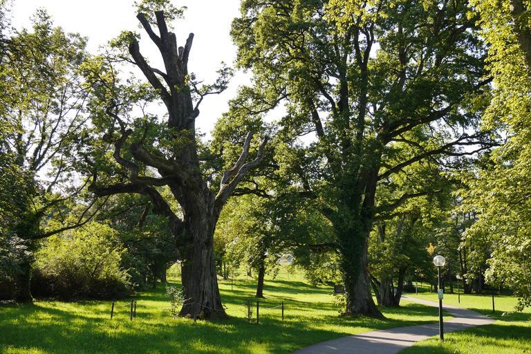 Keywords: oak dead tree solitary tree live new park summer away walk trees grass sunny