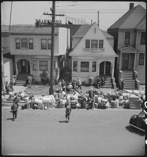 | Keywords: Oakland, California. Baggage of evacuees of Japanese ancestry piled on the sidewalk. The Greyhound . . . - NARA - 537701.jpg Scope and content The full caption for this photograph reads Oakland California Baggage of evacuees of Japanese ancestry piled on the sidewalk The Greyhound buses will soon arrive to take this baggage as well as the evacuees to the Tanforan Assembly center under Civilian Exclusion Order Number 28 General notes 537701 Local identifier 210-G-C368 Department of the Interior War Relocation Authority 02/16/1944 - 06/30/1946 NARA-Author Lange Dorothea 1895-1965 Photographer 1372774 <br /> Still Picture Records Section Special Media Archives Services Division NWCS-S National Archives at College Park 8601 Adelphi Road College Park MD 20740-6001 1942-05-06 Record group Record Group 210 Records of the War Relocation Authority 1941 - 1989 Record group ARC 537 Central Photographic File of the War Relocation Authority compiled 1942 - 1945 Series ARC 536000 File unit File unit ARC Variant control numbers NAIL Control Number NWDNS-210-G-C368 Other versions <gallery> File Oakland _California _Baggage_of_evacuees_of_Japanese_ancestry_piled_on_the_sidewalk _The_Greyhound_ _ _ _-_NARA_-_537701 tif tif File Oakland _California _Baggage_of_evacuees_of_Japanese_ancestry_piled_on_the_sidewalk _The_Greyhound_ _ _ _-_NARA_-_537701 jpg jpg </gallery> NARA-cooperation PD-USGov Dorothea Lange Japanese American internment processing in Oakland |