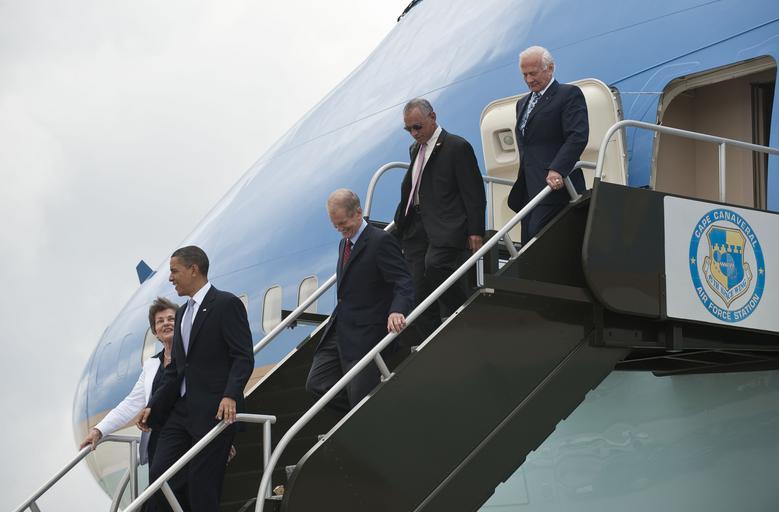 Keywords: Obama Kennedy Space Center Visit DVIDS849419.jpg en President Barack Obama left exits of Air Force One with from left Representative US Representative Suzanne M Kosmas D - FL U S Senator Bill Nelson D-FL NASA Administrator Charles Bolden and Apollo 11 Astronaut Buzz Aldrin after landing at the NASA Kennedy Space Center in Cape Canaveral Fla on Thursday April 15 2010 Obama visited Kennedy to deliver remarks on the bold new course the administration is charting to maintain U S leadership in human space flight Photo Credit NASA/Bill Ingalls NASA Identifier 201004150002HQ 2010 Glenn Research Center https //www dvidshub net/image/849419 849419 2013-02-08 13 38 WASHINGTON D C US PD-USGov Barack Obama in 2010 Air Force One Images from DoD uploaded by Fæ Charles F Bolden Jr |
