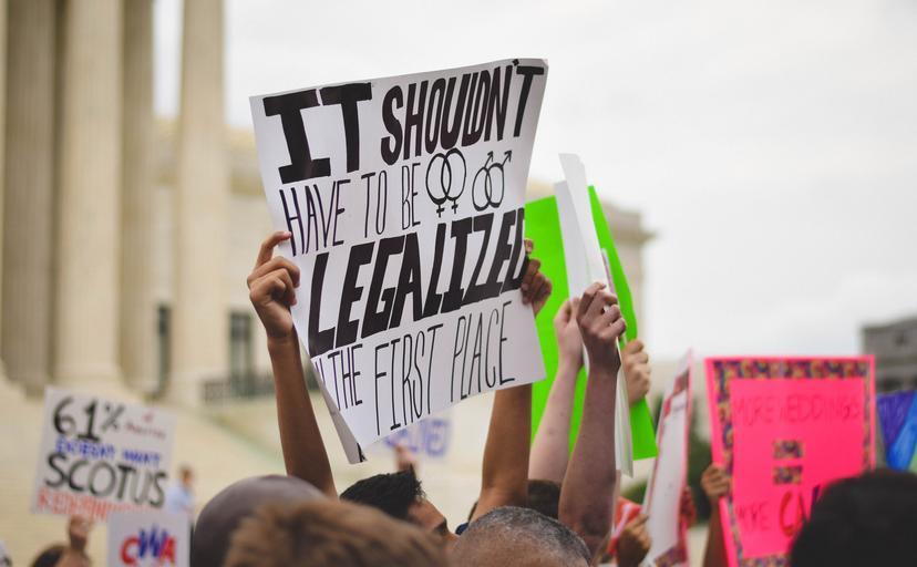 | Keywords: same sex marriage ssm gay lgbt lgbtqi lgbtqia supreme court united states scotus capitol hill washington dc district columbia love lovewins loveislove flag protest march celebration signs justice equality constitution 14th fourteenth amendment The celebration in front of the United States Supreme Court upon the announcement of the Court's decision in Obergefell v. Hodges that same-sex marriage is a constitutional right under the 14th Amendment. Dedicated to the public domain with a CC0 license. The celebration in front of the United States Supreme Court upon the announcement of the Court's decision in Obergefell v. Hodges that same-sex marriage is a constitutional right under the 14th Amendment. Dedicated to the public domain with a CC0 license. |