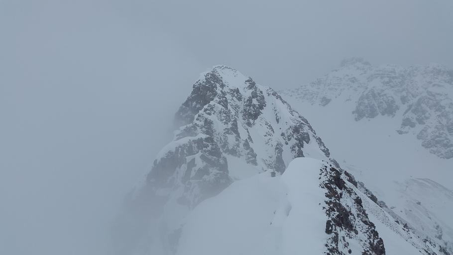 Keywords: oberstdorf hammer top alpine winter mountain summit kleinwalsertal high tip of the miter fog clouds mound formation snow snowy cold inhospitable icy frosty wintry