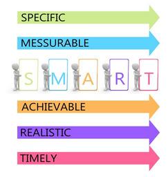 Keywords: objectives smart target target agreement project management personalentwicklung specific measurable accepted realistic terminated specify measure accept reality schedule chronologically thumbs up like clock show hook check mark
