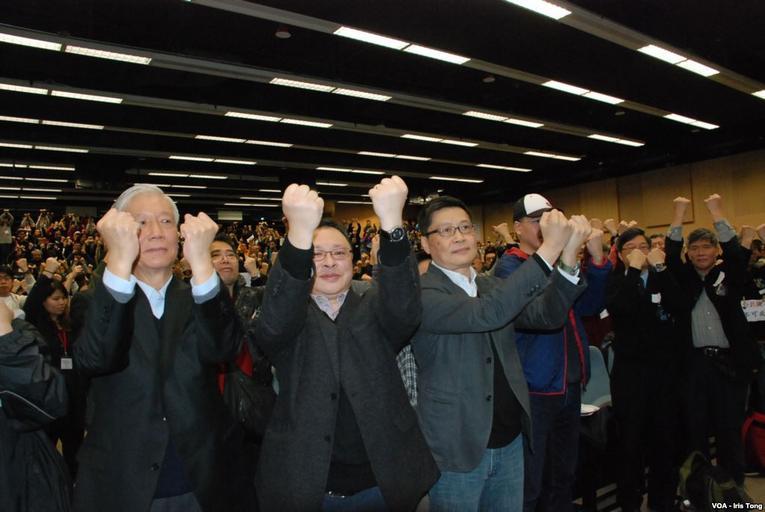 | Keywords: Occupy Central (2014) from VOA (15).jpg en 香港和平佔中三位發起人 左起 明 戴 廷 陳健民與支持 同高舉公民抗命 自願被捕的手勢 2014-06-19 09 18 32 http //www voacantonese com/content/hong-kong-occupy-central-movement-update/1867819 html Voice of America Custom license marker 2014 06 19 PD-USGov-VOA Uploaded with UploadWizard Occupy Central 2014 Benny Tai Yiu Ting Chan Kin Man 陳健民 Chu Yiu-ming |