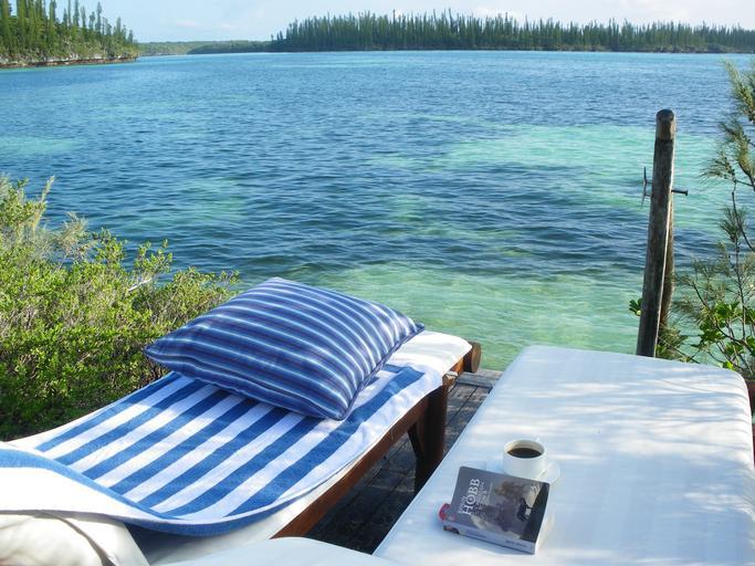 Keywords: ocean lagoon relax reading pause deck chair