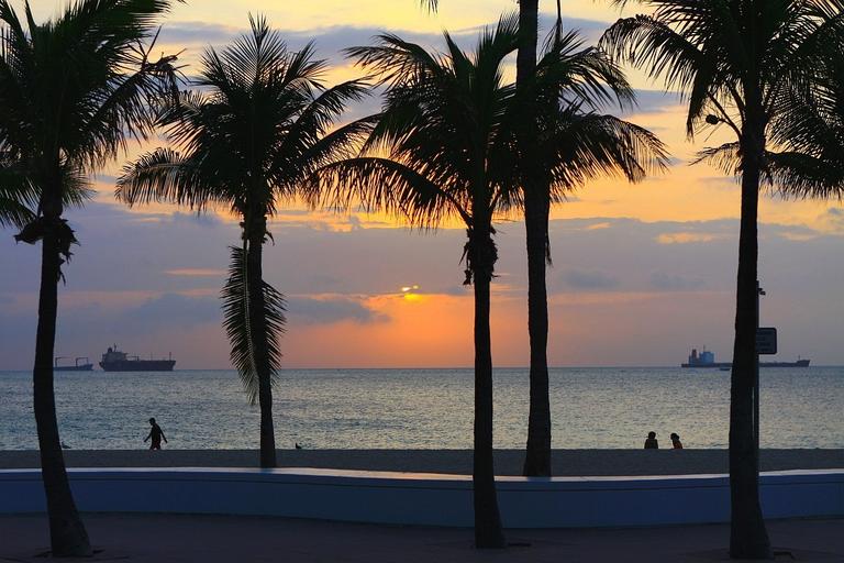 Keywords: ocean sky beach sand people palm tree sunrise clouds ship landscape florida