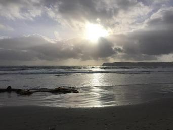 Keywords: ocean sky beach sea water sun sunset clouds waves cloudscape