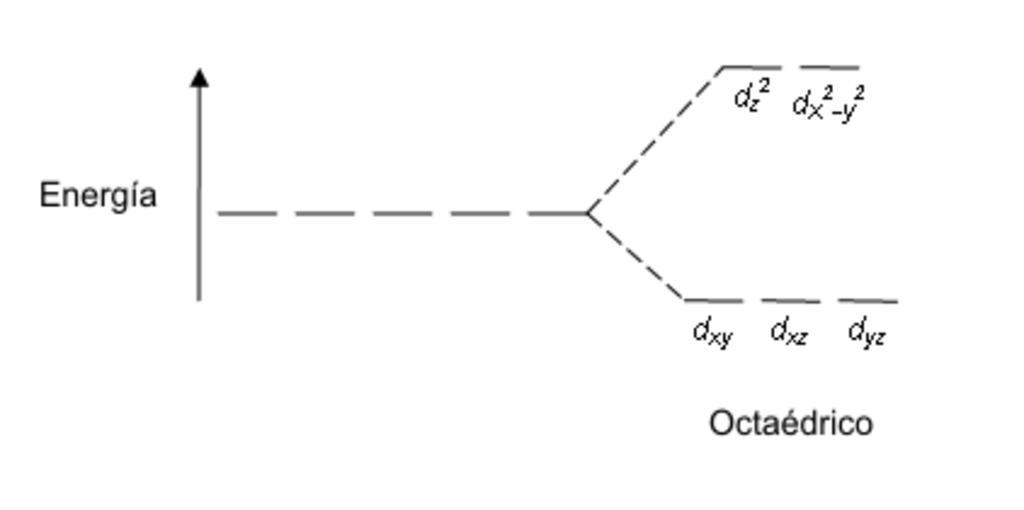 Keywords: Octaedrico.PNG es Diagrama de separación de orbitales en un campo octaédrico own J3D3 2009-09 Coordination chemistry Computational chemistry Molecular orbitals energy levels