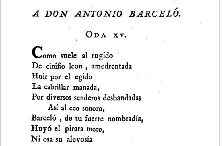 Keywords: Oda xv a don antonio barcelo.png en Excerpt from To Don Antonio Barcelo Ode XV 1791 ca A Don Antonio Barcelo Oda XV 1791 A DON ANTONIO BARCELÓ Oda xv Como suele al rugido De cinifio leon amedrentada Huir por el egido La cabrillar manada Por diversos senderos desbandada; Así al eco sonoro Barceló de tu fuerte nombradla Huyó el pirata moro Ni osa su alevosía Exponerse á tu excelsa valentía ¡O gloriosa nobleza Con duplicados triunfos merecida La heredada grandeza De un esforzado Arrida Es por opinión sola esclarecida No siempre de los fuertes Y buenos nace el fuerte y esforzado Tal vez de otro Laertes Miramos el dechado En otro vil Tersites afeado Padres son de tu gloria Tu intrépido valor y fortaleza Por madre á la victoria Tuviste ; y por tí empieza Sin deberla á ninguno tu nobleza Sobre el ala llevado De los ayrados vientos semejante Te ve el mar enojado Al temible Tonante Que corre el cielo en nube fulminante Tu impertérrito zelo Como deydad propicia de los mares Invocan en el suelo Los votos populares Y ensalzan tus victorias con cantares De los hijos y madres Cesaron los lamentos i en sus brazos Por tí estrechan sus padres Exentos de los lazos Del cautiverio y de sus duros plazos El solar incendiado En que anidaba la africana arpía Su dueño ha recobrado; Y anima la alegría \ Las playas que antes el terror cubría Dilata la labranza Hasta la orilla libre sus labores En tí la confianza Ponen los labradores De sus nuevas cosechas y sudores Tu nave victoriosa De los rencores de la mar y cielo Parece ser la diosa Del ansiado consuelo Que infundir suele al temeroso suelo Sobre áspera tormenta Ella vuela con ala enardecida Qual águila que atenta Al dragón que se anida Del africano valle en la guarida; Trepa con raudo vuelo Entre el soplo del noto y del solano Que contrastan su anhelo; Que contrastado en vano Ceba en la presa su valor ufano http //books google fr/books id IIlzFI3--dEC dq 22Padres 20son 20de 20tu 20gloria 20Tu 20intr C3 A9pido 20valor 20y 20fortaleza 22 pg PA91 v onepage q 22A 20Don 20Antonio 20Barcel C3 B3 22 f false Pedro Montengón 1791 PD-old-100 ImageNote 1 50 10 536 442 695 456 2 See the scanned book in Google Books linked below for the full version ImageNoteEnd 1 Antonio Barceló Scanned Spanish texts |