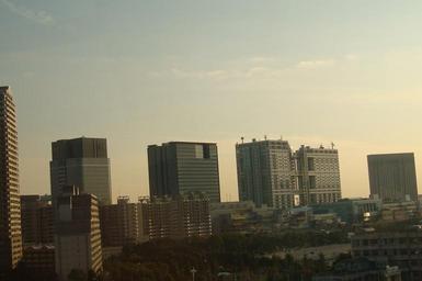 Keywords: Odaiba 2007.JPG Buildings on Odaiba island seen from Rainbow Bridge Fuji Television`s building is the second one from right own 2007-11-01 Ystokyo Odaiba
