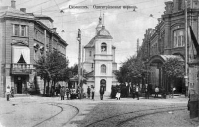 Keywords: Odigitrievsky church in Smolensk 2.jpg en Odigitrievsky church in Smolensk located at the present in Lenin Street destroyed during the Soviet era ru Одигит иевская це ковь в Смоленске находилась на нынешней улице Ленина уничтожена п и советской власти О игинальная отк ытка е установлены before 1917 года PD-RusEmpire 20th-century postcards of Russia Postcards of Smolensk