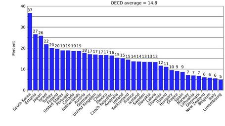 | Keywords: OECD gender wage gap.svg  translate yes en Gender pay gap in OECD countrieshttp //www oecd org/gender/data/employment/ 2016-07-11 own Delphi234 other versions current annually Data wikitable sortable Country Gender gap Year - Australia 15 38 2014 - Austria 17 73 2014 - Belgium 5 91 2013 - Canada 18 63 2015 - Chile 16 67 2013 - Czech Republic 16 46 2013 - Denmark 6 77 2013 - Estonia 26 60 2010 - Finland 19 61 2014 - France 13 67 2012 - Germany 17 08 2014 - Greece 9 09 2014 - Hungary 9 52 2015 - Iceland 13 59 2014 - Ireland 15 17 2014 - Israel 21 83 2011 - Italy 5 56 2014 - Japan 25 87 2014 - Korea 36 65 2014 - Latvia 13 33 2010 - Lithuania 6 96 2010 - Luxembourg 4 97 2010 - Mexico 16 67 2015 - Netherlands 18 60 2010 - New Zealand 6 08 2014 - Norway 7 12 2015 - Poland 11 07 2014 - Portugal 18 88 2014 - Slovakia 13 38 2015 - Slovenia 11 63 2010 - Spain 8 65 2012 - Sweden 13 42 2013 - Switzerland 14 50 2014 - Turkey 20 06 2010 - United Kingdom 16 93 2015 - United States 18 88 2015 cc-zero OECD Gender gap |