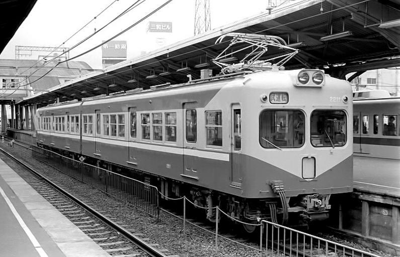 | Keywords: Oer2211 in fujikyu livery.JPG en Odakyu Electric Railway 2200 type EMU in Fujikyuko livery on the test run at Sagamiono station ja 富士 行塗装で試運転中の小田 電鉄2200形電車 相模大野駅にて own Shellparakeet 1982-08-30 Cc-zero 1982 in rail transport in Japan Black and white photographs of Japan in the 1980s Black and white photographs of trains in Japan Odakyu 2200 series Test run |