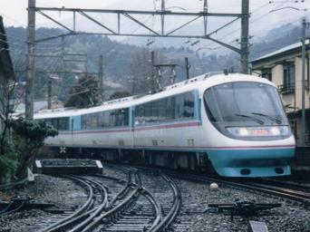 | Keywords: OER 20000 Hakone8 Kazamatsuri 19950318.jpg Odakyu Electric Railway EMU Type 20000 Hakone No 8 at Kazamatsuri Sta Photo by Cassiopeia_sweet 1995-03-18 Cassiopeia_sweet PD-self 1995 in rail transport in Japan Odakyu 20000 series RSE Hakone train Hakone Tozan Railway Kazamatsuri Station Dual-gauge rail tracks in Japan Trains on curves |