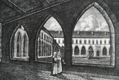 Keywords: Oetenbach Kreuzgang.jpg Kreuzgang Kloster Oetenbach Zentralbibliothek Zürich; Stich Neujahrsblätter Hülfsgesellschaft 1860 date ; upload Mai 2008 unknown; upload by Adrian Michael PD-old Kloster Oetenbach