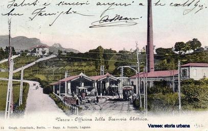 Keywords: Versione colorata. L'officina dei tram posta nell'attuale viale Aguggiari (a sinistra ancora sterrato), ma all'epoca nel comune di Sant'Ambrogio Olona (incorporato a Varese nel 1927). Sullo sfondo il Monte Campo dei Fiori ancora privo dell'Hotel (costruito nel 1912). varese tram vialeaguggiari sambrogioolona |