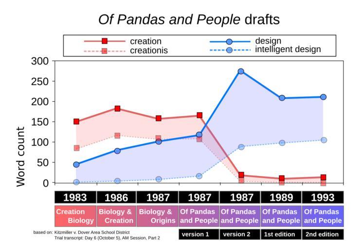 Keywords: OfPandasAndPeople-c-vs-id-en.svg The change in the numbers of expressions creation design creationis and intelligent design in the versions of the book Of Pandas and People from 1983 to 1993 Kitzmiller v Dover Area School District Trial transcript Day 6 October 5 AM Session Part 2 http //www talkorigins org/faqs/dover/day6am2 html day6am889 talkOrigins non-copyright exhibits from the trial http //www2 ncseweb org/kvd/ 16 22 13 May 2008 UTC G ambrus based on the sources listed above Creationism Intelligent design Kitzmiller v Dover Area School District |