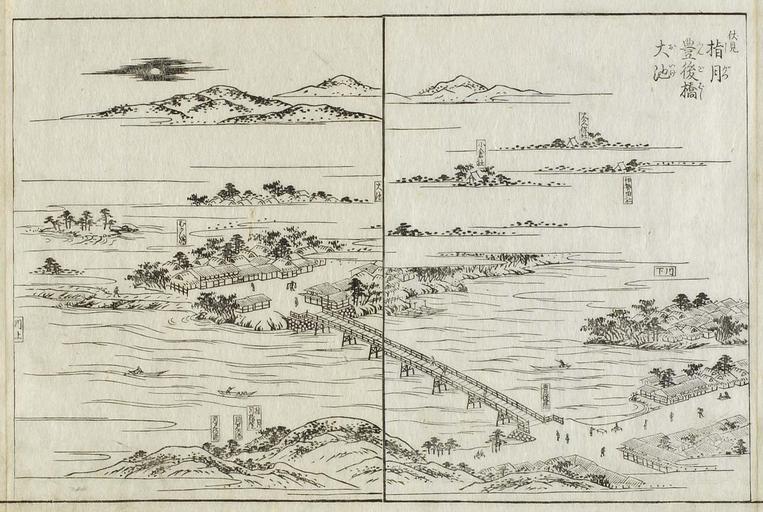 Keywords: Ogura Lake.jpg en Ogura lake in Edo era ja 巨椋の入り江(巨椋池) 都名 図会 (1780年) 巨椋の入り江は 豊後橋の南 向島より渺 たる水 なり 人小 のお池といふ 中に大和街道ありて五十町の堤なり 夏は蓮花河骨生じて炎暑を避るの江なり 冬は水鳥おほく集りければ 漁猟をなす 千首 おほくらの入江の の跡にまた光のこして蛍とぶなり 為尹 http //www nichibun ac jp/ 秋里籬島著・竹原春 画 1780 PD-old-100 Edo period History of Kyoto prefecture |
