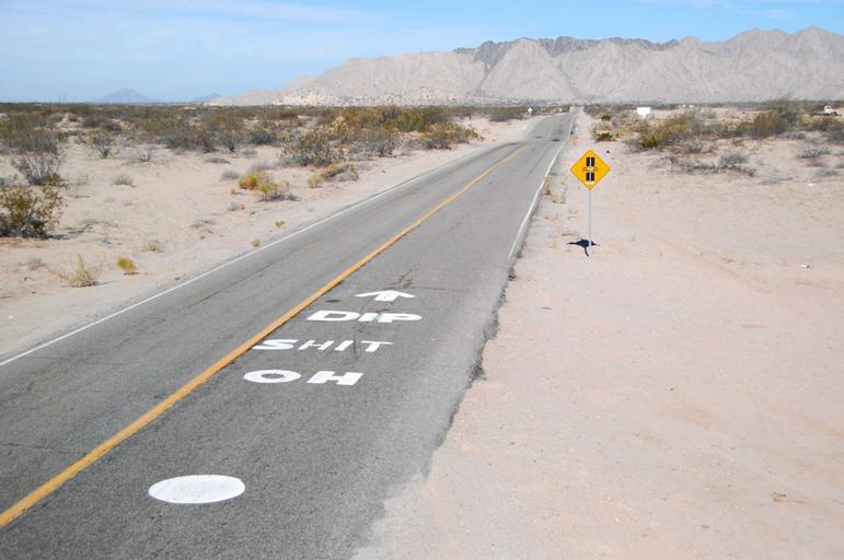 Keywords: Oh shit dip 2.jpg en The OH SHIT DIP on the highway from San Felipe to Puertecitos in Baja California Mexico This warning is for the worst of the vados or fords used to cross normally-dry waterways that cross the highway Geoff Wikipedia user bigboojum Geoff Wikipedia user bigboojum 2009-01-03 2009092410010554 30 8542 -114 7441 Geoff Mexican Federal Highways San Felipe Puertecitos Humor signs |