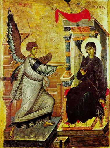 MAKE A MEME View Large Image Ohrid annunciation icon.jpg Икона от началото на 14 в изоб азяваща Благовещение цъ квата Свети Климент в Ох ид Република  акедония The icon of ...