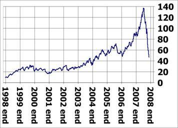 | Keywords: Oil world price from 1998 to 2008 November 21.svg en World oil price from 1999 to 2008 November 21; weekly prices in United States dollars per barrel on the vertical scale with year markers on the horizontal scale I 84user created this work using the excel file pet_pri_wco_k_w xls from the U S Energy Information Administration's web page http //tonto eia doe gov/dnav/pet/pet_pri_wco_k_w htm direct link http //tonto eia doe gov/dnav/pet/xls/pet_pri_wco_k_w xls and using Open Source Gnumeric 1 9 1 to produce the chart 2008-12-03 84user talk None See Licensing below See also thumb left US oil price in dollars from 1999 to 2008-10-17 thumb center US oil price from 1998 to 2008-10-31 thumb left US oil price from 1998 to 2008-11-21 thumb cnter World oil price from 1998 to 2008-11-21 thumb left World oil price in dollars from 1978 to 2008-10-17 log scale thumb center oil world price from 1998 to 2008 October clr SVG economics |